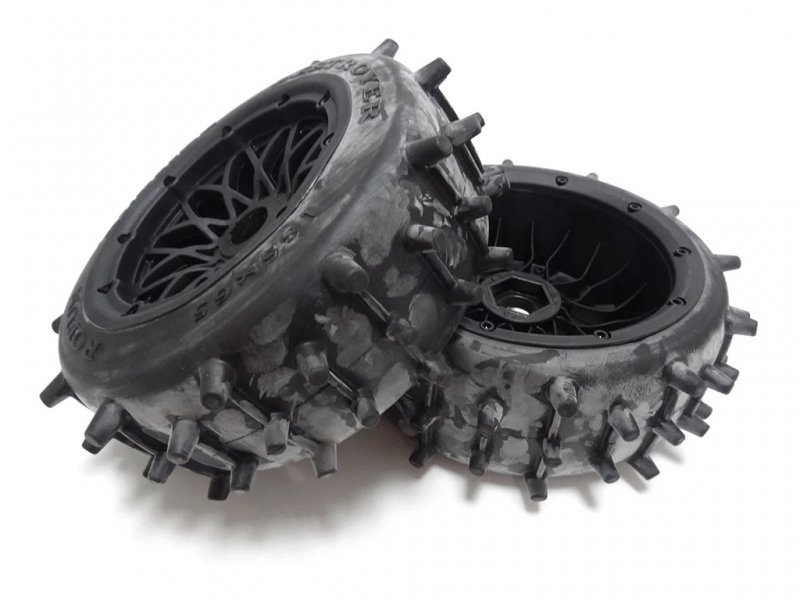Rovan ROFUN Destroyer Baja Buggy Front Knobby Spike Tires on 20-Spoke Beadlock R