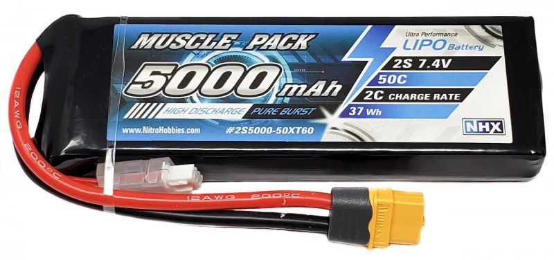 NHX Muscle Pack 2S 7.4V 5000mAh 50C Hard Case Lipo Battery w/ XT60 Connector