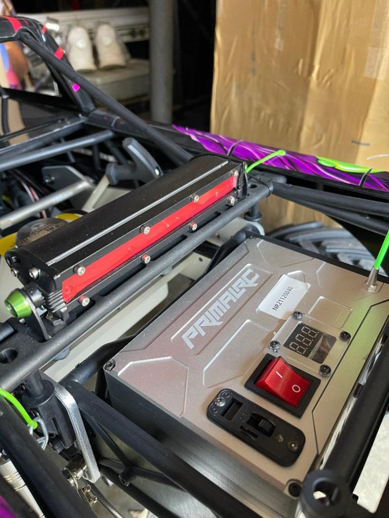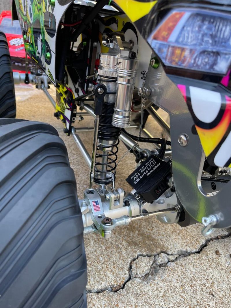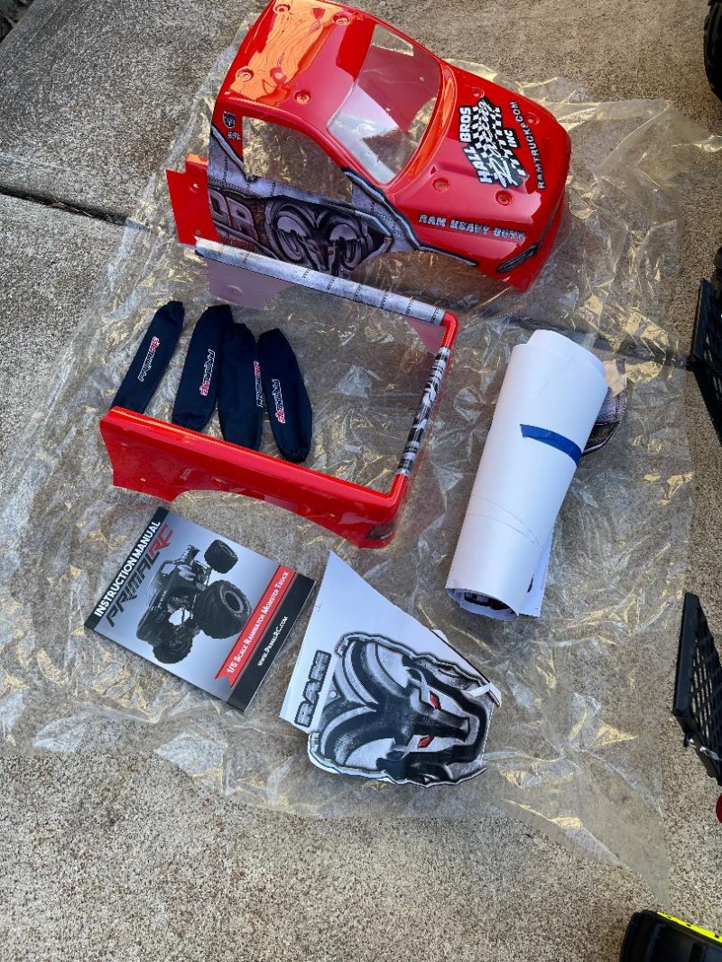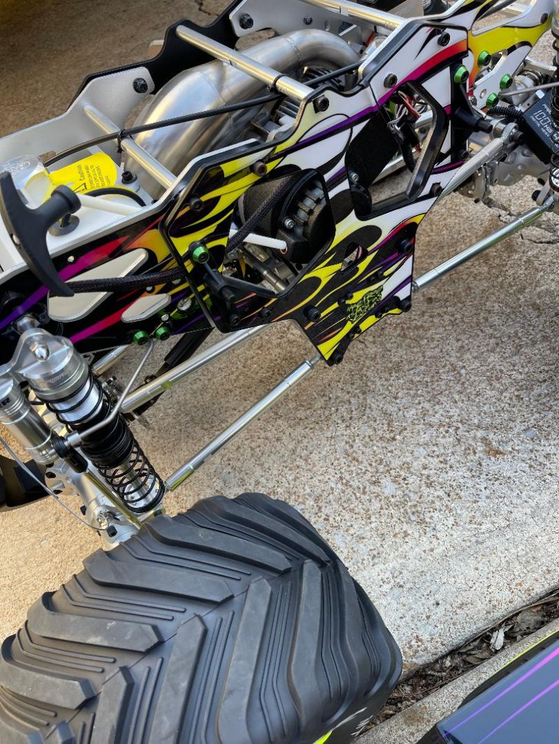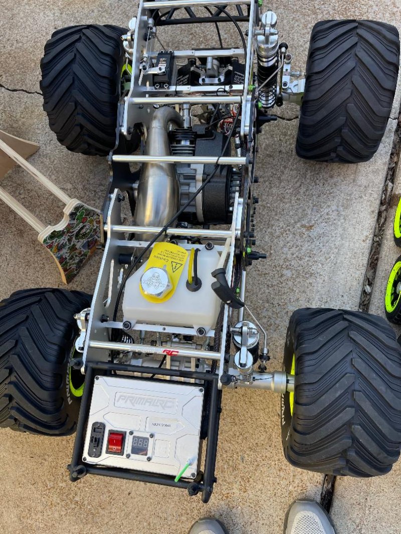 New custom Primal RC Raminator V3 49cc stock gasoline 2-stroke engine, never been run or had fuel in tank. Darkside studios wrap, Light bars front and rear see pics, Lights in body on its own lipo battery, Chrome push bar bumper. Matching stands, Many upgrades throughout shock oil reservoir, extra body, extra parts & premix fuel 2 bottles. Matching built from the ground up custom trailer w/ fully functioning ramps. Rovan 36cc sand rail buggy is optional or add $700 and shown for detail. I am located in St. Louis Missouri for pickup, bring a truck these are huge and truck alone is 85lb. Can meet within 50 mile radius. Call text or email 314-256-nine nine eight seven. or will5006@sbcglobal.net SPECIFICATIONS Features Feature Description Skill Level Advanced Speed 20 to 30 MPH Engine 49cc 2-Stroke Reed-valve Engine Transmission Single Speed with Remote Reverse Feature Differential Type Front and Rear Bevel Gear Differential Brake Front & Rear Single Disc Mounted Driveshaft Mounted Manual Disc Brakes Drive System All Steel Gears with double chain transfer case drive Steering Steering Dual Servo with HD Aluminum Servo Saver Radio 2.4 GHz 6-Channel FlySky Digital Radio Specifications Spec Description Length 40 inches Width 32 inches Height 24 inches Weight 80 pounds Wheelbase 24 inches Tires 12 x 7.5 inches Rims 5.5 in diameter x 6 inches wide Minimum Ground Clearance 4 inches, Adjustable Minimum Chassis Clearance: 4.5 inches, Adjustable Minimum Axle Ground Clearance 4 inches Tracks 31.5 inches Servos 2x 20kg Throttle/Reverse Servos 2x 100kg Steering Servos 1x 70kg Brake Servo Battery Type 7.2v 4800 mAh NiMH Battery TRIED AND TRUE DESIGN This is version 3 of the Primal RC Monster Truck platform Solid Axle Ready-To-Run Monster Truck 2-Stroke Reed-Valve 49cc Gas Mini Motorcycle Engine 78mm Centrifugal Clutch Transmitter-Activated Reverse Function Four-Link Coil-Over-Shock Suspension Setup Weighs A Backbreaking 80 Pounds 32 inches wide, 40 inches long and 24 inches tall Largest in-production tires designed for RC Solid Axle CNC aluminum axle tubes with steel axle shafts. Heavy duty CNC aluminum-cased oil-filled 4 bevel gear differentials. Steel ring and pinon gears. Modular axle tube designed for easy maintenance. Ready for rear-wheel steering conversion kit. NEW VERSION 3 EDITION With the latest version of the Raminator Monster Truck, we've introduced upgrades to the platform based on customer feedback. Upgraded 100KG steering servos, upgraded large capacity MEGA shocks, upgraded aluminum electronics box with voltage meter, and an upgraded and redesigned reverse gear slider are just some of the upgrades we've added to this model.