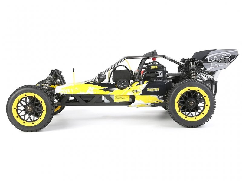 1/5 Scale Rovan RC Ready To Run 305A 30.5cc Gas Buggy Now with Upgraded parts like Symmetrical Steering, Chrome Metal Roll Cage and D5 Rear Wing! Vehicle Type: 1/5 Scale Rovan RC 2WD Buggy Model: RV305A Description 1/5 Scale Rovan RC Ready To Run 305A 30.5cc Gas Buggy Now with Upgraded parts like Symmetrical Steering, Chrome Metal Roll Cage and D5 Rear Wing! Vehicle Type: 1/5 Scale Rovan RC 2WD Buggy Model: RV305A Compatible with HPI 5b, King Motor and other buggies. This buggy is a Huge 32 inches long gas powered Baja buggy. Upgraded Nylon Front and Rear Suspension Arms Includes a Great Chrome Steel Tuned Pipe that really helps get all the power out of this engine. Upgraded Rear CNC Aluminum Shock Tower Brace. Now with a 3 Channel Fly-Sky GT3B Computer Radio! Can reach speeds of 40+ mph right out of the box. Powerful 30.5cc 4 bolt head motor! It gives you the feel of racing the real thing. A great cost effective way to get into gas 1/5 scale. Everything in pictures is INCLUDED!! Stock parts and aftermarket parts are available everywhere for this buggy including hobby shops, HPI, internet etc, and of course in my website. Since HPI 5b parts bolt right on this buggy as well as the vast amount of aftermarket parts, it is very easy to maintain this buggy. This is a great way to get into 1/5 gas buggy racing without breaking the bank. You will not be disappointed! Specifications Very powerful 30.5cc 4 Bolt 2 stroke (gas and oil mix) engine High torque upgraded 45KG Digital metal gear steering servo Symmetrical Steering System All Metal gear 20KG metal throttle servo Rear wheel drive Alloy gear differential case with hardened steel gears.(very important, does not leak oil as the original plastic ones did) Mini Pin off road tires on UPGRADED HD Nylon Multi spoke wheels with HD bead lock rings and metal hex with upgraded inner foam insert Rear disc brakes Heavy duty steel driveshafts Full ball bearings Chrome Metal Roll Cage Chrome Steel Tuned Pipe 8000 rpm clutch D5 Upgraded rear wing Strong aluminum chassis and other aluminum parts VVC 6mm shock absorber with aluminum spring spacers and holders 6V 2000MAH NIMH battery and USA charger included GT-3B 2.4GHz transmitter computer radio with automatic frequency hopping digital system, 10 model memory, servo reversing, End point adjustment, Dual rate, Exponential, Auto brake system (ABS), model name etc.. No need to worry about having the same signal as someone else. Built in fail-safe just in case you go out of range. General tools: spark plug wrench, wheel wrench, allen wrench(5pcs), cross wrench, mixed fuel ratio can, charger, multi tool, air filter foam element set, wing, plastic parts bag, repair bag, English instruction manual With upgraded 30.5cc Engine, Nylon Suspension Arms, Tuned Pipe and HD CNC Aluminum Rear Shock Brace This makes this the best deal for a Baja that I have ever seen! This vehicle is compatible with HPI Baja 5B, SS, 2.0 Baja buggy and King Motor Baja buggy models.