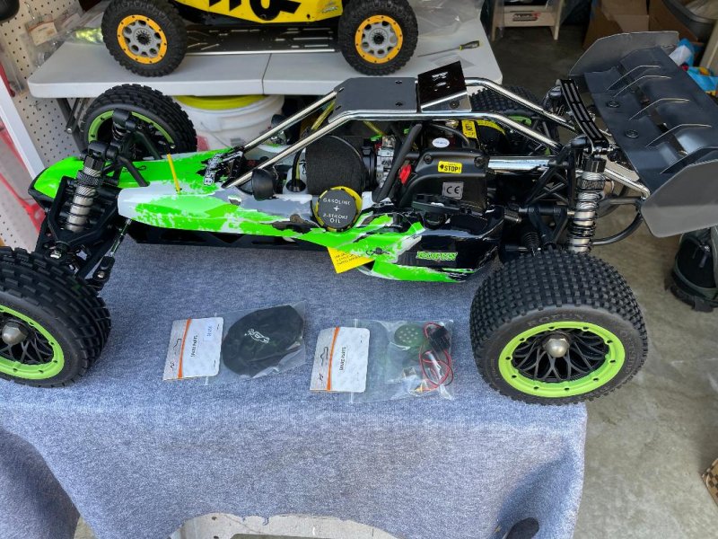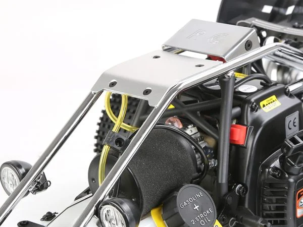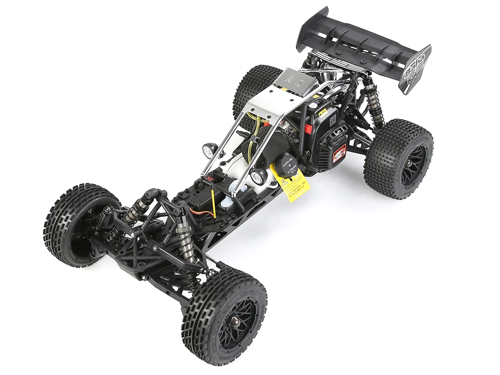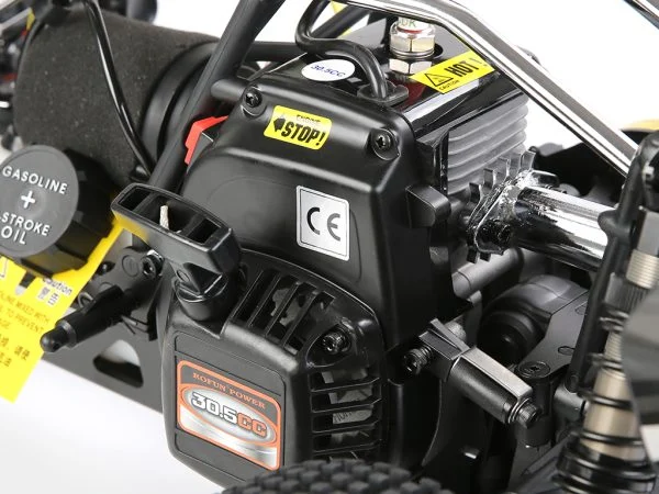 1/5 Scale Rovan RC Ready To Run 305A 30.5cc Gas Buggy Includes FREE tow rope, black wheel nuts, light kit & air cleaner cover Now with Upgraded parts like Symmetrical Steering, Chrome Metal Roll Cage and D5 Rear Wing! Vehicle Type: 1/5 Scale Rovan RC 2WD Buggy Model: RV305A Description 1/5 Scale Rovan RC Ready To Run 305A 30.5cc Gas Buggy Now with Upgraded parts like Symmetrical Steering, Chrome Metal Roll Cage and D5 Rear Wing! Vehicle Type: 1/5 Scale Rovan RC 2WD Buggy Model: RV305A Compatible with HPI 5b, King Motor and other buggies. This buggy is a Huge 32 inches long gas powered Baja buggy. Upgraded Nylon Front and Rear Suspension Arms Includes a Great Chrome Steel Tuned Pipe that really helps get all the power out of this engine. Upgraded Rear CNC Aluminum Shock Tower Brace. Now with a 3 Channel Fly-Sky GT3B Computer Radio! Can reach speeds of 40+ mph right out of the box. Powerful 30.5cc 4 bolt head motor! It gives you the feel of racing the real thing. A great cost effective way to get into gas 1/5 scale. Everything in pictures is INCLUDED!! Stock parts and aftermarket parts are available everywhere for this buggy including hobby shops, HPI, internet etc, and of course in my website. Since HPI 5b parts bolt right on this buggy as well as the vast amount of aftermarket parts, it is very easy to maintain this buggy. This is a great way to get into 1/5 gas buggy racing without breaking the bank. You will not be disappointed! Specifications Very powerful 30.5cc 4 Bolt 2 stroke (gas and oil mix) engine High torque upgraded 45KG Digital metal gear steering servo Symmetrical Steering System All Metal gear 20KG metal throttle servo Rear wheel drive Alloy gear differential case with hardened steel gears.(very important, does not leak oil as the original plastic ones did) Mini Pin off road tires on UPGRADED HD Nylon Multi spoke wheels with HD bead lock rings and metal hex with upgraded inner foam insert Rear disc brakes Heavy duty steel driveshafts Full ball bearings Chrome Metal Roll Cage Chrome Steel Tuned Pipe 8000 rpm clutch D5 Upgraded rear wing Strong aluminum chassis and other aluminum parts VVC 6mm shock absorber with aluminum spring spacers and holders 6V 2000MAH NIMH battery and USA charger included GT-3B 2.4GHz transmitter computer radio with automatic frequency hopping digital system, 10 model memory, servo reversing, End point adjustment, Dual rate, Exponential, Auto brake system (ABS), model name etc.. No need to worry about having the same signal as someone else. Built in fail-safe just in case you go out of range. General tools: spark plug wrench, wheel wrench, allen wrench(5pcs), cross wrench, mixed fuel ratio can, charger, multi tool, air filter foam element set, wing, plastic parts bag, repair bag, English instruction manual With upgraded 30.5cc Engine, Nylon Suspension Arms, Tuned Pipe and HD CNC Aluminum Rear Shock Brace This makes this the best deal for a Baja that I have ever seen! This vehicle is compatible with HPI Baja 5B, SS, 2.0 Baja buggy and King Motor Baja buggy models.
