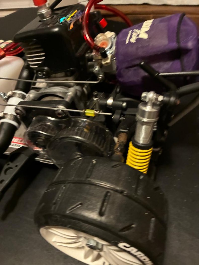 Brand new with various upgrades, never seen fuel. FG SPORTSLINE 4WD 530 Black Tuned Edition + Zenoah Engine (ARTR) -BMW M4 DTM The models are built on a 4mm aluminium chassis with double wishbones front and rear. All borings are countersunk. The models are equipped with front disk brakes for an optimal braking power. Fully adjustable front and rear double wishbone suspensions. Further equipment points are : differential gear, central brake with oversized disk, oil-pressure shock absorbers with volume control and external adjusting ring for the initial tension of the spring. All rotating parts on ball bearings. The body parts are made of clear polycarbonate. Tires are glued on the rims. The models are driven by a 26ccm Zenoah engine with a powerincreasing tuned pipe. The engine runs with a 2-stroke petrol-oil mixture. Through the installed pull-start system the engine can be started without any problem. The tank capacity enables you to run your model around 45 minutes. Black Tuned Edition : • Supplied with shock absorbers part 07209 • Universal joint f. front axle 68415 • small module transmission 07750 • cell reinforcement part 69286 • new brake discs part 08458/03. Dimensions : • Length 800 mm • Width 392 mm • Height ca.250 mm • Wheelbase 530 mm • Weight 10,2 kg Not included : • Radio system 2.4GHz