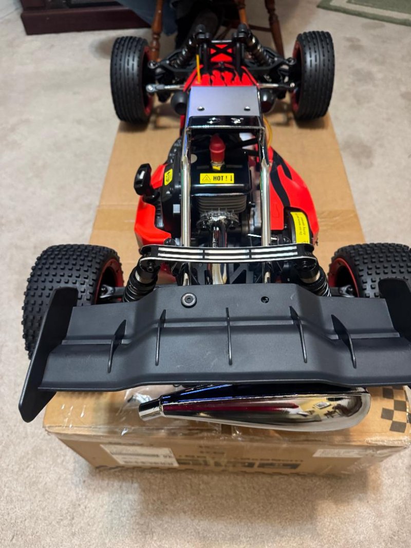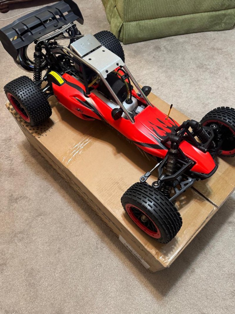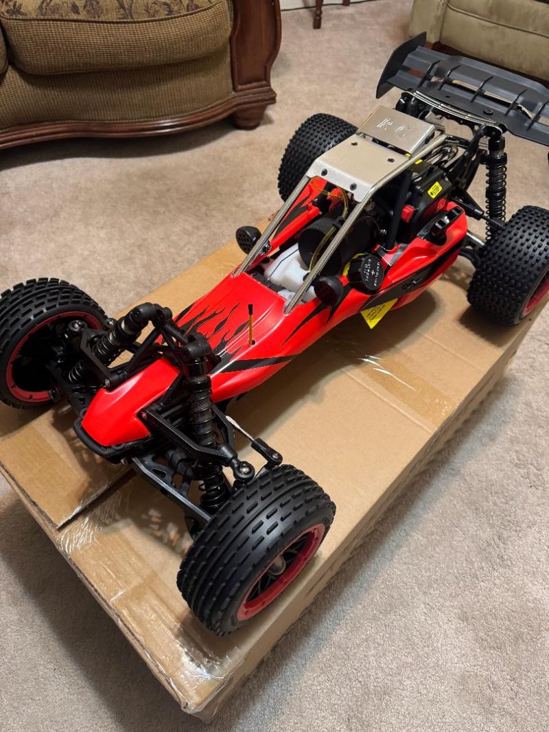 1/5 Scale Rovan RC Ready To Run 305A 30.5cc Gas Buggy Now with Upgraded parts like Symmetrical Steering, Chrome Metal Roll Cage and D5 Rear Wing! Vehicle Type: 1/5 Scale Rovan RC 2WD Buggy Model: RV305A Description 1/5 Scale Rovan RC Ready To Run 305A 30.5cc Gas Buggy Now with Upgraded parts like Symmetrical Steering, Chrome Metal Roll Cage and D5 Rear Wing! Vehicle Type: 1/5 Scale Rovan RC 2WD Buggy Model: RV305A Compatible with HPI 5b, King Motor and other buggies. This buggy is a Huge 32 inches long gas powered Baja buggy. Upgraded Nylon Front and Rear Suspension Arms Includes a Great Chrome Steel Tuned Pipe that really helps get all the power out of this engine. Upgraded Rear CNC Aluminum Shock Tower Brace. Now with a 3 Channel Fly-Sky GT3B Computer Radio! Can reach speeds of 40+ mph right out of the box. Powerful 30.5cc 4 bolt head motor! It gives you the feel of racing the real thing. A great cost effective way to get into gas 1/5 scale. Everything in pictures is INCLUDED!! Stock parts and aftermarket parts are available everywhere for this buggy including hobby shops, HPI, internet etc, and of course in my website. Since HPI 5b parts bolt right on this buggy as well as the vast amount of aftermarket parts, it is very easy to maintain this buggy. This is a great way to get into 1/5 gas buggy racing without breaking the bank. You will not be disappointed! Specifications Very powerful 30.5cc 4 Bolt 2 stroke (gas and oil mix) engine High torque upgraded 45KG Digital metal gear steering servo Symmetrical Steering System All Metal gear 20KG metal throttle servo Rear wheel drive Alloy gear differential case with hardened steel gears.(very important, does not leak oil as the original plastic ones did) Mini Pin off road tires on UPGRADED HD Nylon Multi spoke wheels with HD bead lock rings and metal hex with upgraded inner foam insert Rear disc brakes Heavy duty steel driveshafts Full ball bearings Chrome Metal Roll Cage Chrome Steel Tuned Pipe 8000 rpm clutch D5 Upgraded rear wing Strong aluminum chassis and other aluminum parts VVC 6mm shock absorber with aluminum spring spacers and holders 6V 2000MAH NIMH battery and USA charger included GT-3B 2.4GHz transmitter computer radio with automatic frequency hopping digital system, 10 model memory, servo reversing, End point adjustment, Dual rate, Exponential, Auto brake system (ABS), model name etc.. No need to worry about having the same signal as someone else. Built in fail-safe just in case you go out of range. General tools: spark plug wrench, wheel wrench, allen wrench(5pcs), cross wrench, mixed fuel ratio can, charger, multi tool, air filter foam element set, wing, plastic parts bag, repair bag, English instruction manual With upgraded 30.5cc Engine, Nylon Suspension Arms, Tuned Pipe and HD CNC Aluminum Rear Shock Brace This makes this the best deal for a Baja that I have ever seen! This vehicle is compatible with HPI Baja 5B, SS, 2.0 Baja buggy and King Motor Baja buggy models.