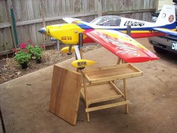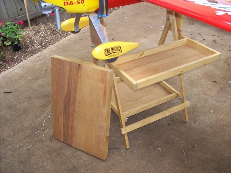 Custom-built flight stands By Ed These are top-notch quality made stands that will accommodate 120size birds up to 50cc size like the one shown in photos. If your back hurts from bending over tables or on the ground for setting up your plane then this is the solution! Folds up like a TV tray and will easily fit in your trunk. Sets up in minutes at the field. Two standard size shelves 24x10 and bottom 19x16 all hardware is included. The only option is the top shelf measures 25x18 very nice for working on truggies or foamies! * 37 inches tall * Optional top shelf for working on truggies or foamies add $35 * Middle shelf 24x10 * Bottom shelf 19x16 If you drop a screw or something else one of the two shelves will surely catch it! FedEx ground shipping with tracking # $20-$35 depending on location! Any question please feel free to ask!